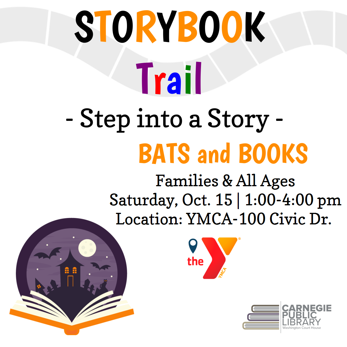 LabelInformation Dates & times Sat, 10/15/2022 - 1:00pm -Sat, 10/15/2022 - 4:00pm Category Children Age Groups Location Offsite Location: YMCA-100 Civic Dr.